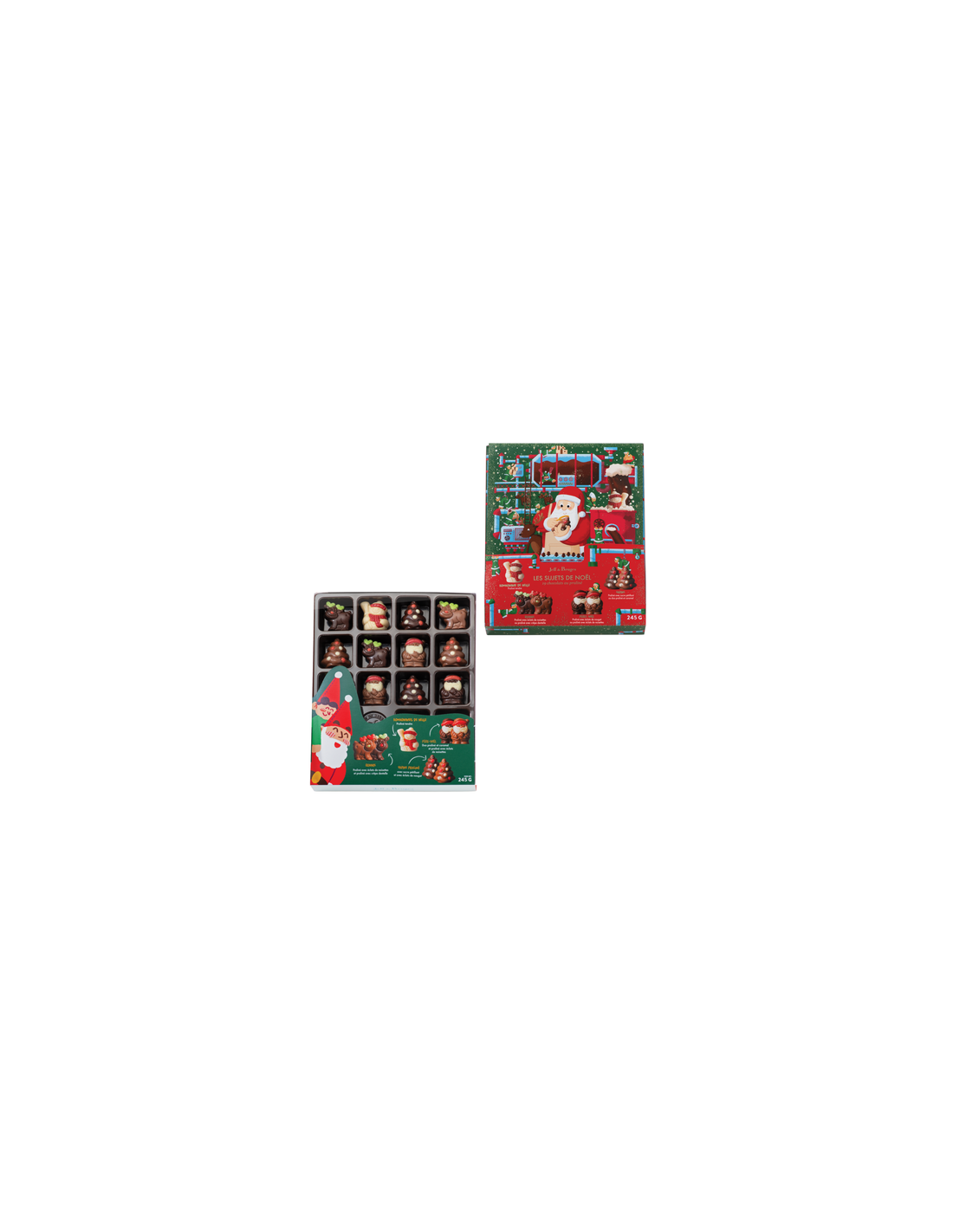 Festiva caja navideña rellena con figuras de chocolate infantiles:Renos pinosPapá noel,muñeco de nieve...... Un regalo que sorprenderá dulcemente a niños y adultos por su presentación y el exquisito contenido
