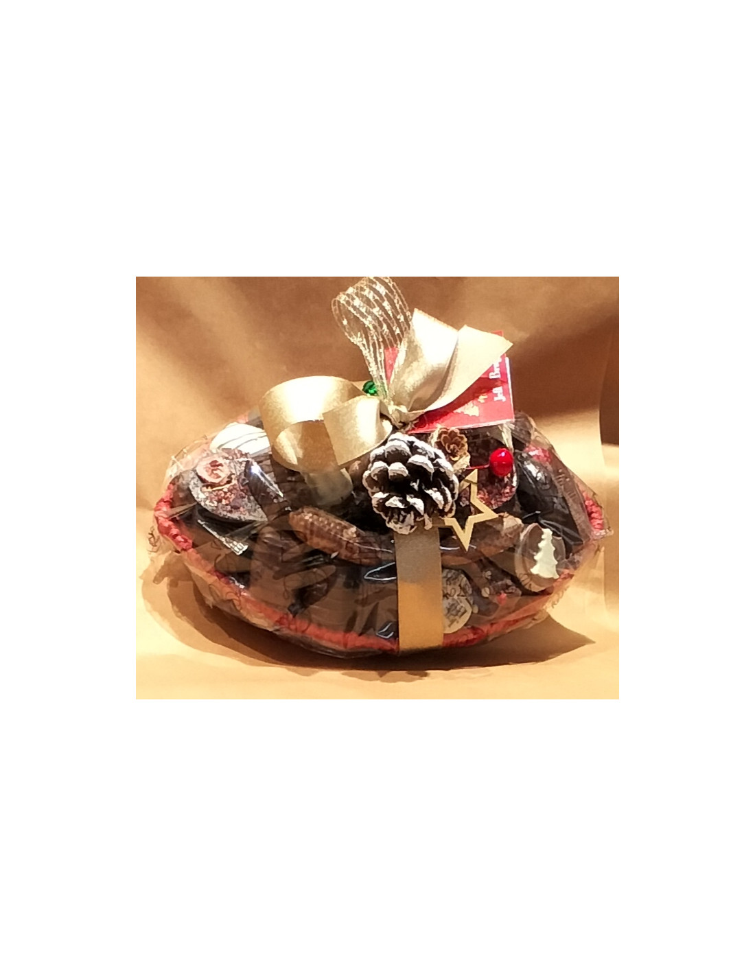 Decorativa cesta Navideña,rellena con una variedad de exquisitos bombones belgas.Un dulce regalo en una lujosa presentación.
