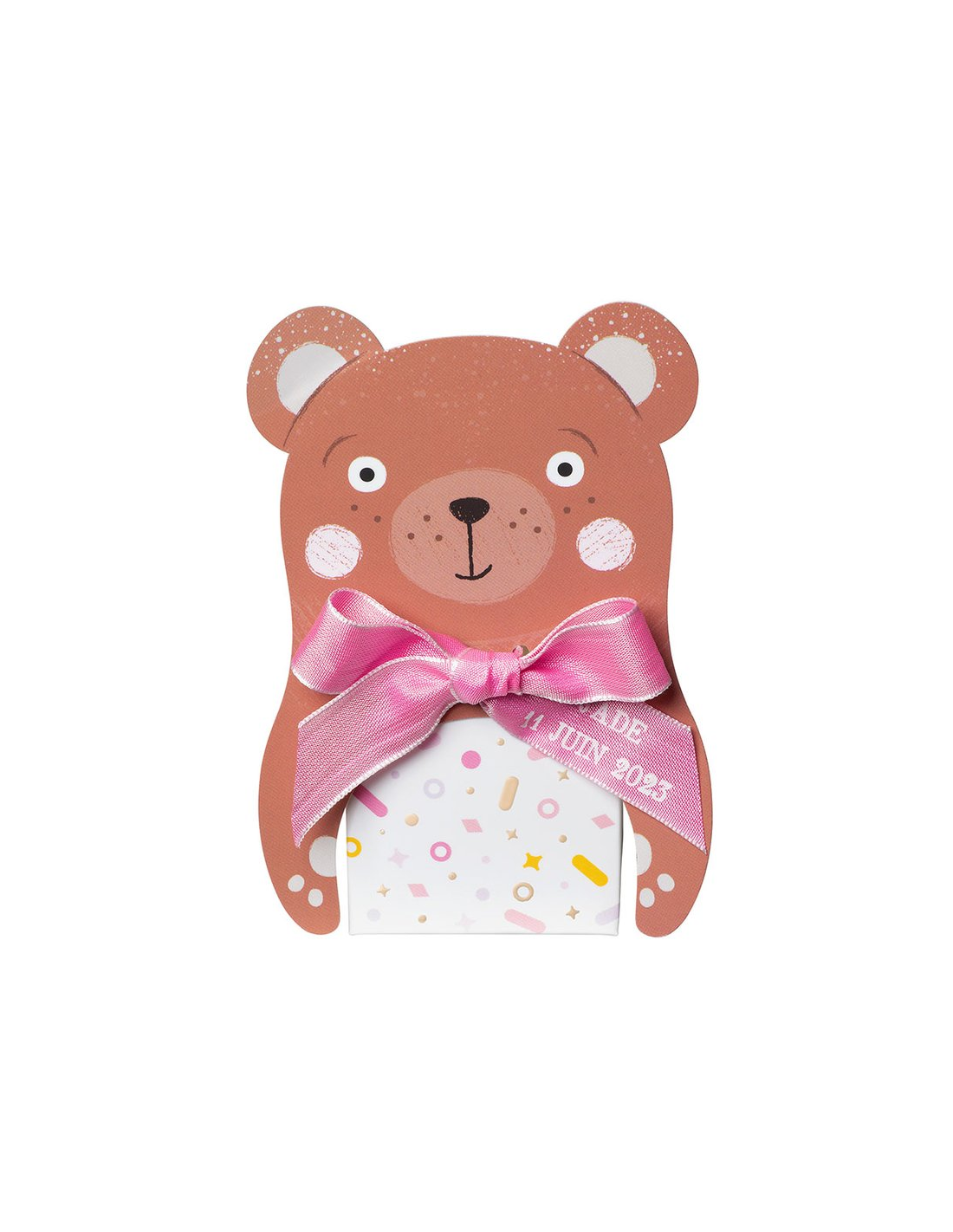 Estuche para bautizo de niña con tres bombones y tres palets de chocolate