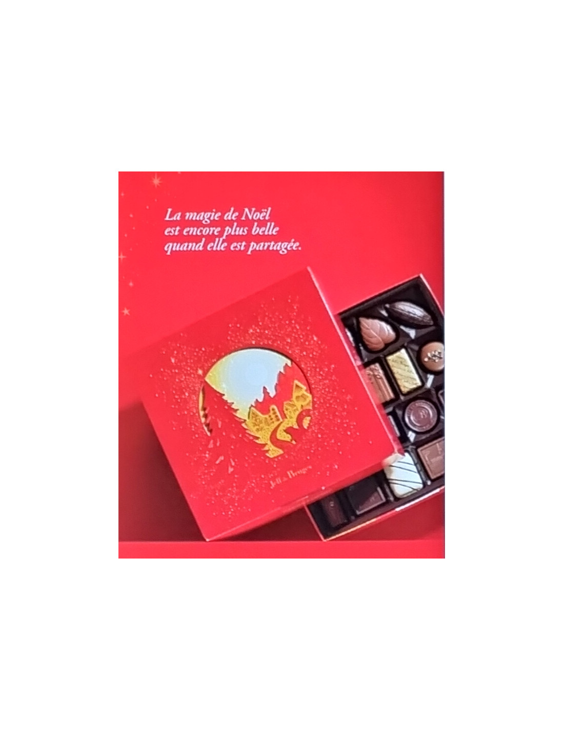 Caja de Navidad rellena con 500 grms de bombones belgas surtidos